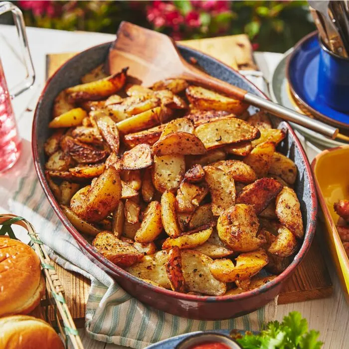 Crispy potato wedges, golden and seasoned